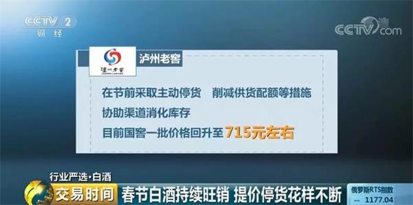 泸州老窖在节前采取主动停货、削减供货配额等措施协助渠道消化库存,停货后国窖一批价格回升至715元左右。