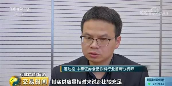 中泰证券食品饮料行业首席分析师范劲松:2019年,除了老窖的国窖部分区域出现一点断供之外,其他地方其实供应量相对来说都比较充足。但是老窖区域断供,也是阶段性价格出现调整的行为,其实从市场的购买行为来看,供应量是比较充足的。