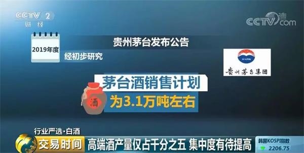 此前,贵州茅台发布公告称,经初步核算,2018年度生产茅台酒基酒约4.97万吨,系列酒基酒约2.05万吨;经初步研究,公司2019年度茅台酒销售计划为3.1万吨左右。