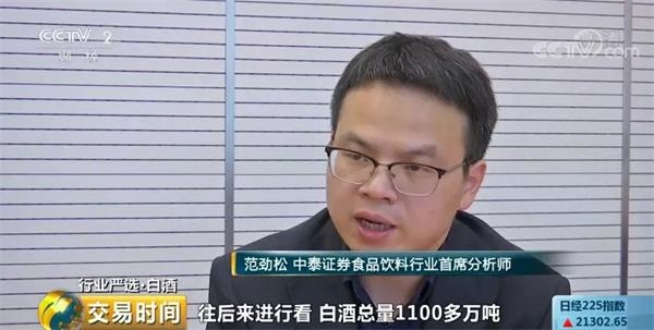 中泰证券食品饮料行业首席分析师范劲松:往后看,白酒总量是1100多万吨,总量没有比较明显的变化,其实更多是一种结构性的机会。