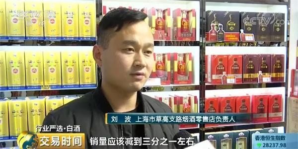 上海市草高支路烟酒零售店负责人刘波:同比去年,销量应该减到1/3左右,中低端酒销量还可以,高端酒像茅台、五粮液,现在受影响比较大。现在基本上这些品牌知名度比较高的,利润已经达到最低了,没办法了。