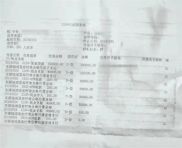 李红通过熟人复印了李振华名下2014年在润昌农商行的贷款流水单。账号贷款期限为2014年1月1日至2014年12月31日。银行流水单显示,在2014年6月24日,店子支行、清泉支行和建设路支行,有人分六次支走这个账号15万元,每一笔都不超过5万元。一位银行人士告诉新京报记者,柜台取款不超五万元无需授权,持卡人知道银行卡密码就可以。