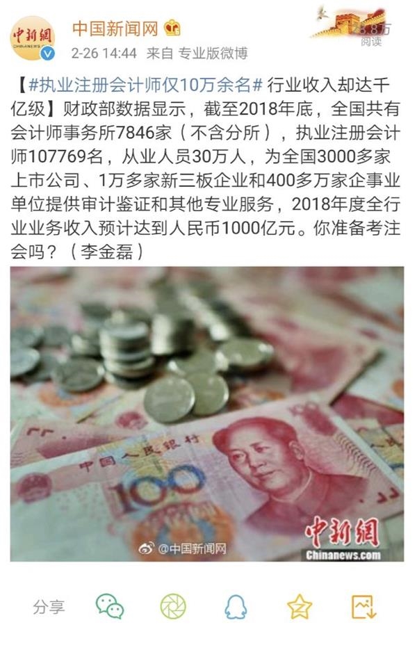 “执业注册会计师仅10万余名行业收入却达千亿级”的消息引发关注!