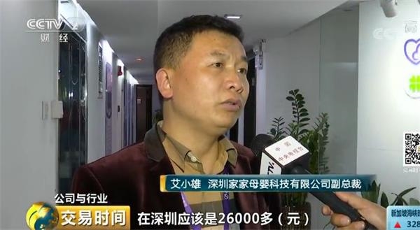 深圳家家母婴科技有限公司副总裁艾小雄表示,金牌月嫂在深圳应该是26000多元,一般的月嫂也要七千八左右,大概比去年月嫂的价格上涨了10%左右。