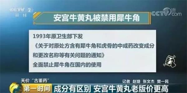 为什么过期的安宫牛黄丸如此走俏?山东中医药大学药学院生药系主任李峰教授分析,现在市场上主要收购1993年前生产的安宫牛黄丸,其主要原因就是,1989年我国实施《野生动物保护条例》,限定1993年以后,野生犀牛角被明令禁止用于制药原料,原有的剩余犀角原料被封存,用于研究等特殊用途。生产厂家于是改用水牛角的浓缩粉替代它。此外,天然牛黄、天然麝香也很昂贵,由于原料稀缺,现在的安宫牛黄丸多改用人工麝香等替代品。