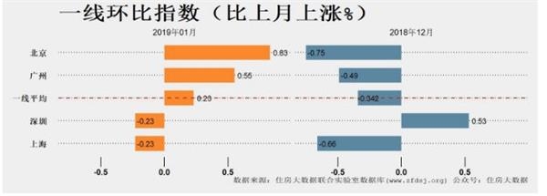 大数据房价指数(BHPI)监测显示,2019年1月,142个样本城市房价平均环比下跌0.17%,环比跌幅比上月收窄0.51个百分点。其中,一线城市房价平均环比上升0.23%,环比涨幅比上月扩大0.57个百分点。