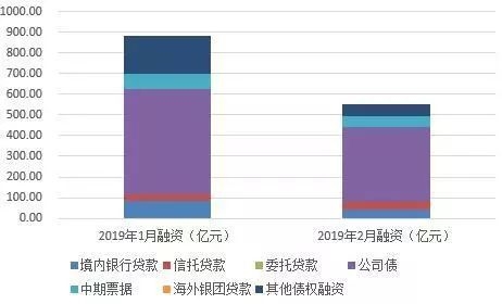 图 : 2019年1月、2月典型上市房企融资情况对比