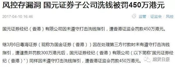 据期货日报记者不完全统计,国元证券(香港)、国金证券(香港)等多家内资背景的经纪机构均涉事其中,罚款金额260万至450万港元不等。国信证券(香港)此次的受罚金额是之前受罚机构的5倍左右。