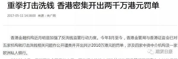 事实上,近年来,香港监管部门对本地金融机构的监管力度不断加强。香港证监会经过对持牌经纪公司调查后,曾在2017年开出不少与打击洗钱相关的罚单。