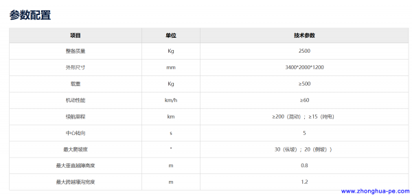 产品卖点 地形适应力强: 通过特有的纵向摆臂式独立油气悬架,配合大扭矩轮毂电机,可主动调节车体离地间隙,并能够依靠油气悬架本身的非线性刚度与阻尼特性适应崎岖地面起伏,具有较强的越野越障能力。 通过性优越: 可越过0.8m垂直墙,或通过主动翻转星形轮架、车身前后部位辅助越障机构进一步增强越障能力。